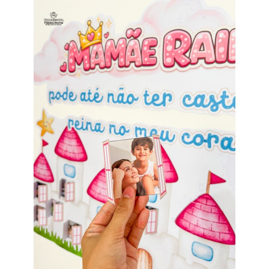 Cada janelinha carrega um pedacinho de amor, com as fotos das mães da sua turma, transformando tudo em uma homenagem viva, afetiva e inesquecível.