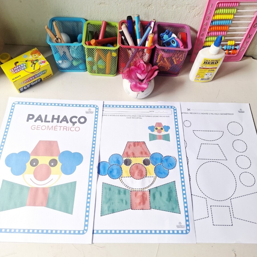 ✅ Versão para Colorir: Para a criança personalizar o seu próprio palhaço antes da montagem.