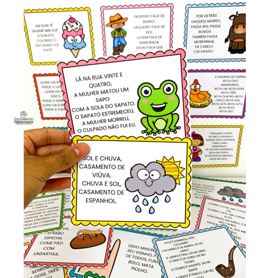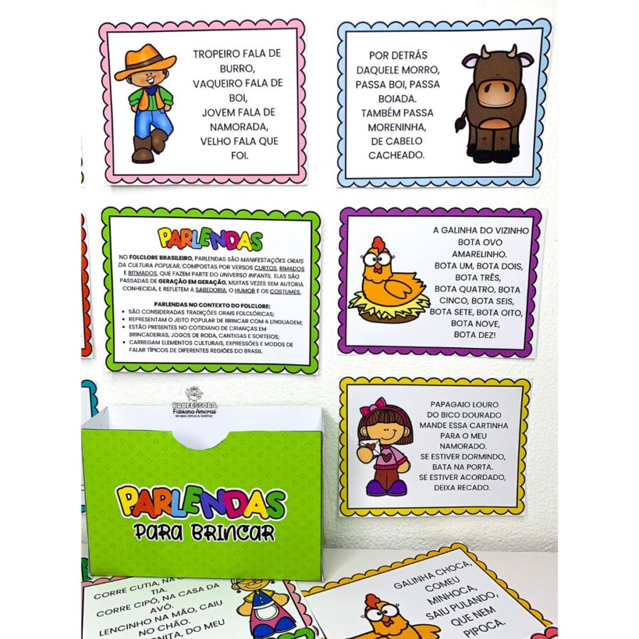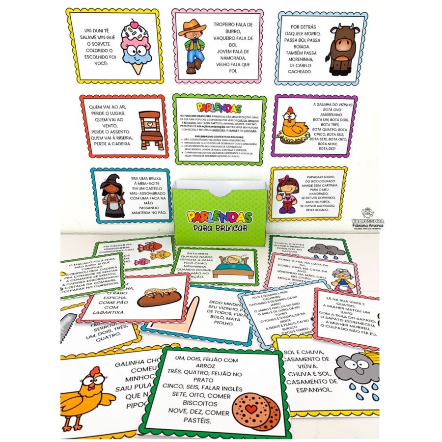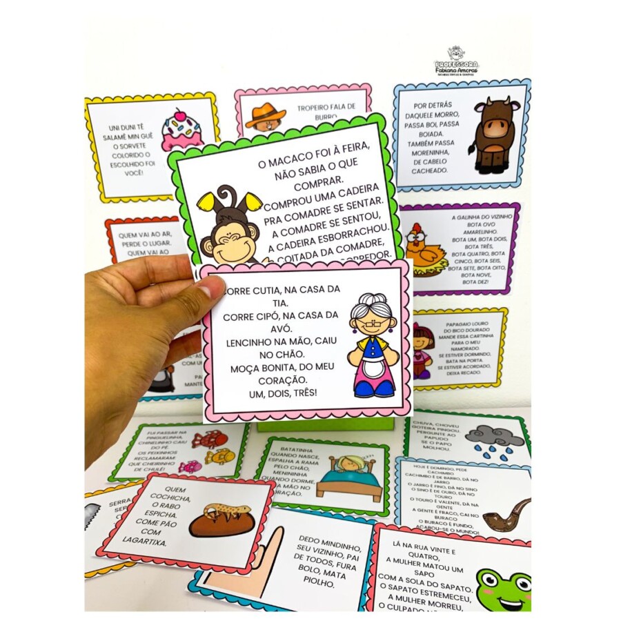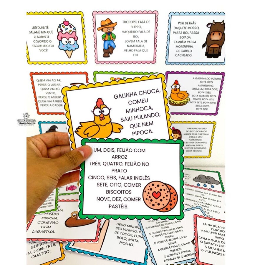 • 🃏 Fichas de Parlendas Ilustradas: Diversos cards coloridos com as parlendas mais queridas, como: